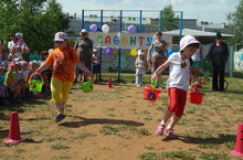 На спортивной площадке проводились состязания: бег в мешках, бег с ложками, «бой горшков», перетяни канат, бег с ведрами. Целью всех состязаний был не только спортивный интерес, но и ознакомление детей с народными традициями, играми. Воспитатель по обучению татарскому языку Абдурахманова А.В. рассказала детям об истории праздника, о том, как проводится Сабантуй в наши дни. Праздник завершился веселым танцем и угощением детей. Хочется верить, что впечатления от праздника, любовь к истории и традиции своего народа останутся надолго в памяти ребят. -