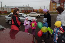 Дети из старшей, подготовительной и логопедической групп вышли к близлежащим магазинам с большими шарами красного, желтого и зеленого цветов. Раздавая жителям Южного микрорайона буклеты, ребята призвали взрослых быть заботливыми по отношению к пешеходам и быть внимательными за рулем.