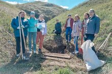 Сотрудники детского сада "Сказка" организовали трудовой десант и провели акцию "Живи, родник!". Место, где располагается родник, очень красивое, но сильно загрязнено и заброшено. Нам пришлось потрудиться. Вооружившись перчатками, мешками для мусора, граблями и лопатами территория родника была расчищена от сухой травы, веток, мусора. Чтобы спуск к источнику был более комфортным, сделали на склонах ступеньки.