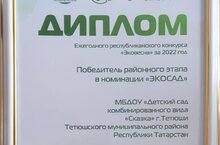 Сегодня состоялось вручение дипломов победителям районного этапа ежегодной республиканской экологической акции «#ЭКОВЕСНА-2022». Наш детский сад занял 1 место в номинации «ЭКОсад» и награждён дипломом и ценным подарком.