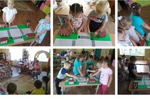 На этой неделе дети средней группы " Бусинки" закрепили знания о правилах дорожного движения и дорожных знаках. А в центре развития по ПДД обновили макет проезжей части, сделав новые дома и " посадили" вдоль дороги деревья.