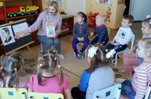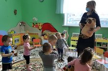 Дети 1 младшей группы побывали в гостях у А. Л. Барто. Они отправились в гости на « лошадке», вместе с героями её стихов ходили по наклонной доске, играли с погремушками. Успокаивали плачущую Таню игрой в мяч, а зайчика прятали от дождя под зонт. Под колыбельную уложили спать игрушки и довольные и радостные вернулись на самолете, который построили сами в группу.