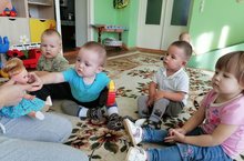 Сегодня во Всемирный день ребенка дети первой младшей группы познакомились с новой куклой. Они узнали,что у нее нет имени. Все вместе дети дали ей имя Катя,приняли в свою семью,нашли ей маму и папу,сестрёнку. Ребята поиграли с Катей в игру,показали ей пальчиковую гимнастику "Семья". Дети обещали Кате заботиться о ней и любить ее
