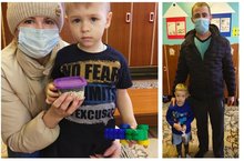По пути детей застал дождик, но они не испугались,а весело спрятались под зонтиком.
