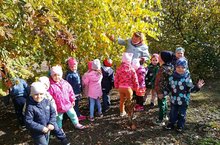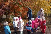 Ребята первой и второй младших групп на прогулке полюбовались красотой осенних деревьев