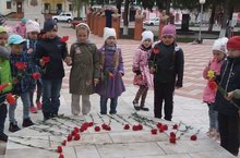 Мәктәпкә әзерлек төркеме балалары тәрбиячеләр белән берлектә Дан һәйкәле янында Мәңгелек ут янына чәчәкләр салдылар, үз гомерләрен Җиңү хакына биргән солдатларны искә алдылар.
