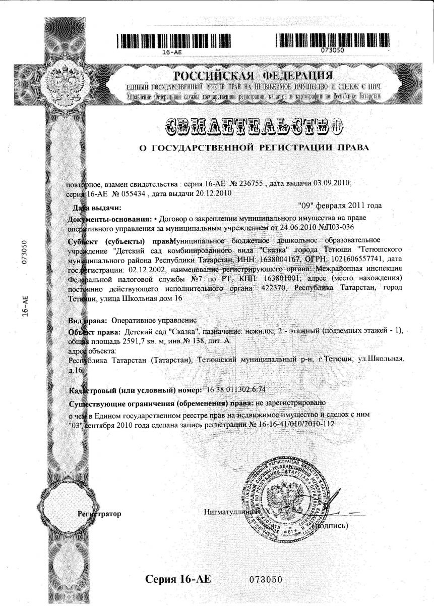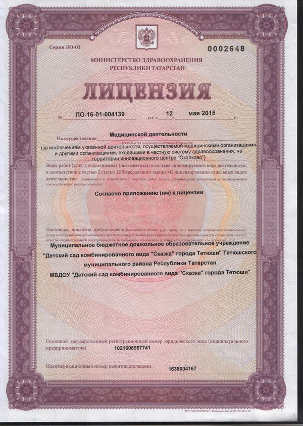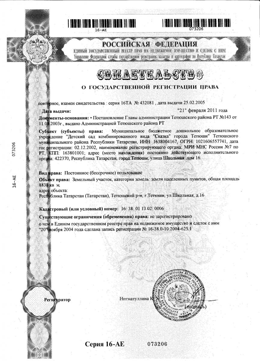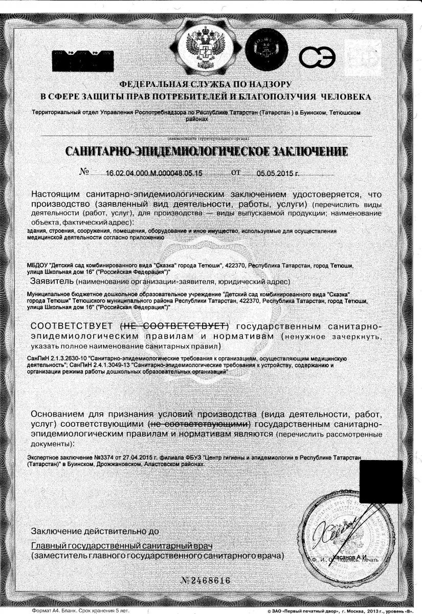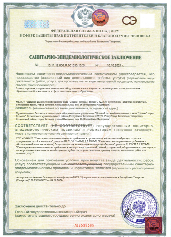 | Короткое название: | МБДОУ «Детский сад комбинированного вида «Сказка» города Тетюши» Тетюшского муниципального района РТ |