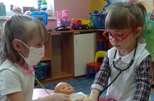 Играя в сюжетно- ролевую игру «Доктор», дети лечили куклу Катю.