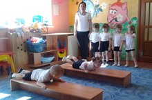 В детском саду прошло спортивное развлечение, в форме подвижных игр и игровых упражнений, где закрепили основные виды движений: бег в рассыпную, прыжки на двух ногах на месте и с продвижением, ходьбу и бег «змейкой» между предметами, ползание по гимнастической скамейке, ходьбу по ограниченной площади опоры, играли в подвижные игры. Развивали физические качества: быстроту, ловкость, умение реагировать на сигнал, внимание. Создали у детей бодрое, весёлое настроение на весь день.