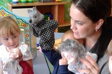 Театрализованная деятельность позволяет решить многие воспитательно-образовательные задачи. Через образы, краски, звуки дети знакомятся с окружающим миром во всем его разнообразии.Сегодня у нас прошел кукольный театр на сказку "Красная шапочка". Дети познакомились с героями и с удовольствием разыграли сказку.