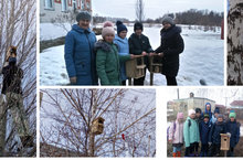 На каникулах дети с папами смастерили скворечники. Развесили их неподалеку от школы. Будем наблюдать за новыми жильцами!