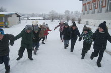 В зимние каникулы любимое занятие у детей- катание на санках, лыжах. Сегодня мы играли на школьной площадке в различные подвижные игры.