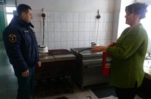 В ходе плановой проверки школы старшим инспектором межрайонным оттделения надзорной деятельности и ПР по Камскоустьинскому и Тетюшскому районам УНД и ПР ГУ МЧС России по РТ капитаном внутренней службы Горбуновым Р.М. был проведен инструктаж с работниками по правилам пользования первичными средствами для тушения пожара - огнетушителями.