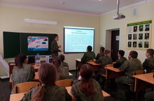 С воспитанниками ГБОУ «Тетюшская кадетская школа-интернат» заместитель начальника территориального отдела Управления Федеральной службы по надзору в сфере защиты прав потребителей и благополучия человека г.Тетюши Мазюкин Олег Алексеевич провел профилактическую беседу на тему «Защита здоровья и безопасность граждан». Акцент был сделан то том, что угроза распространения COVID-19 все еще сохраняется! Поэтому настоятельно рекомендует в местах массового скопления, в общественном транспорте, на объектах торговли надевать маски, а также соблюдать социальную дистанцию. Не пренебрегать простыми правилами безопасности в общественных местах. Эти меры помогут нам и нашим близким сохранить здоровье и препятствовать заражению инфекциями. Так же напомнил, что маску необходимо использовать в общественном транспорте, магазинах, банках, МФЦ и т.д. Чтобы обезопасить себя от заражения, важно правильно ее носить: - маска должна тщательно закрепляться, плотно закрывать рот и нос, не оставляя зазоров; - старайтесь не касаться поверхностей маски при ее снятии, если вы ее коснулись, тщательно вымойте руки с мылом или спиртовым средством; - влажную или отсыревшую маску следует сменить на новую, сухую; - не используйте вторично одноразовую маску; - использованную одноразовую маску следует немедленно выбросить в отходы. Мазюкин Олег Алексеевич напомнил, что эта одиночная мера не обеспечивает полной защиты от заболевания. Кроме ношения маски необходимо соблюдать и другие виды профилактики, в числе которых – соблюдение социальной дистанции, сокращение количества посещений мест массового скопления людей, использование дезинфицирующих средств и т.д.