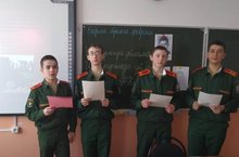 Кадеты 10-11 классов приняли участие во встрече с военнослужащими 31-ой десантной штурмовой бригады, организованной в ТСШ №1. Был показан фильм о боевом пути ДШБ. Дети имели возможность примерить экипировку. Военнослужащими разведроты был показан рукопашный бой.