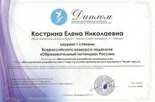 Дипломом I степени в номинации «Методические разработки командных игр» награждена Кострина Елена Николаевна учитель информатики ГБОУ «Тетюшская кадетская школа-интернат».