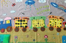 Совместно с родителями собрали коллекцию пуговиц, сделали веселое панно «Страна пуговиц». Наш паровозик везет различные пуговицы большие, маленькие, тканевые, металлические, детские, фигурные. С детьми сделали различные поделки из пуговиц, со старшими детьми учились пришивать пуговицы, а для малышей сделали различные игры из пуговиц.