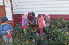 С большим интересом наши воспитанники вместе с младшим воспитателем во время прогулки собирали семена бархатцев и цинии, чтобы посеять их на следующий год.
