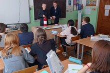 В рамках Всероссийского открытого урока по "Основам безопасности жизнедеятельности" ребята отряда ДЮП провели занятие по тушению очага возгорания огнетушителем ОП-4.