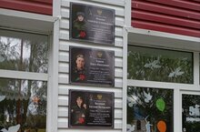 Мемориальная доска размещена на здании школы, где они прошли обучение.