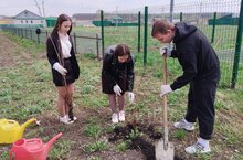 В рамках национального проекта "Экологическое благополучие" обучающиеся 11 класса МБОУ "Кильдюшевская СОШ" продолжают участвовать в конкурсе «Эковесна-2025». Сегодня в рамках акции "Сад памяти" высадили саженцы на территории школы.