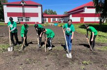 Воспитанники пришкольного лагеря труда и отдыха высадили томаты на пришкольном участке.