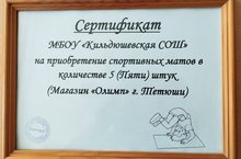 Коллектив МБОУ "Кильдюшевская СОШ", педагоги и учащиеся, выражают благодарность директору ООО " Авангард " Абрамову В. И. за оказанную материальную помощь в приобретении спортивного инвентаря для занятий.