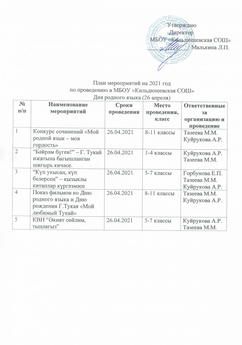 План мероприятий на 2021 год по проведению Дня родного языка