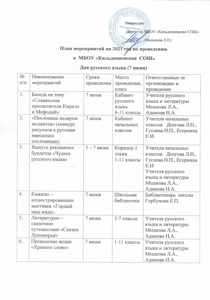 План мероприятий на 2021 год по проведению Дня русского языка