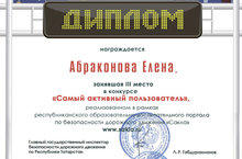 По итогам 2020/2021 учебного года в числе лучших блогеров портала sakla.ru, действующего в рамках республиканского образовательно-воспитательного проекта по безопасности дорожного движения «Сакла», стала наша ученица Абраконова Елена. Она заняла 3 место в конкурсе "Самый активный пользователь". Поздравляем!!!