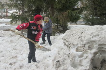 В рамках экологического двухмесячника учащиеся школы совместно с учителями очищают территорию школы от снега