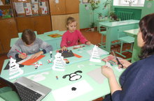 В Новогодние каникулы двери нашей школы открыты каждый день для самых любознательных, творческих и активных ребятишек. Сегодня учащиеся начальных классов на кружке «Умелые руки» вместе с учителем Казаевой Мариной Петровной своими руками смастерили символ года – СОБАЧКУ. Абраконова Елена и Романов Николай с удовольствием повесили своих бумажных питомцев на ёлочку