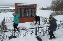 Юнармейцы МБОУ "Киртелинская СОШ" совместно с руководителем отряда Абраконовым С.С. в рамках акции "Обелиск" почистили от снега территорию Памятника павших в Великой Отечественной войне.