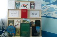 В рамках Года экологии, санитарно-экологического двухмесячника по очистке территории муниципальных районов, конкурса ЭКОВЕСНА библиотекарь Абраконова Т.В. в фойе школы оформила выставку книг "Судьба природы - наша судьба"