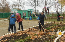 Учащиеся и учителя школы провели субботник по очистке территории школы от опавших листьев