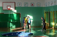 Спортивное мероприятие "А,ну-ка, парни!" провел учитель физкультуры Шарафиев И.Н. Две команды "Дембеля" и "Новобранцы" участвовали в различных конкурсах. Своим гимнастическим выступлением всех удивил Казаев Алексей. А девочки порадовали мальчиков номерами художественной самодеятельности. Победила команда "Дембеля"