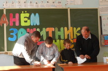 Пока учащиеся старших классов соревновались в военизированной игре "Зарница", учащиеся начальных классов собрались на конкурсную программу со своими папами. Весёлые эстафеты, интересные конкурсы позволили хорошо отдохнуть и ребятам и папам. Завершился праздничный день чаепитием в школьной столовой.