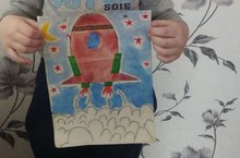 Дошкольники тоже не отстают они тоже участвовали в конкурсе рисунков о космосе.