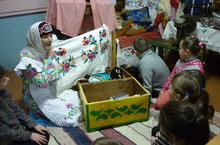 "Әби сандыгы" янына җыелган балалар татар халкының киемнәре белән таныштылар, сандыктан иң мөһим хәзинә - татар халык иҗаты үрнәкләрен туплаган матур әдәбият та чыкты. Балалар мәзәкләр, үртәвечләр, юаткычлар, иярмешләрне бик зур кызыксыну белән тыңладылар. Уеннарны уйнап, такмакларны кабатлап карадылар.
