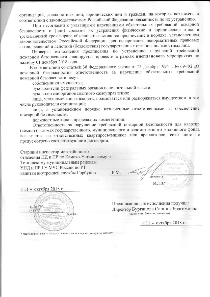 Предписание по устранению нарушений требований пожарной безопасности