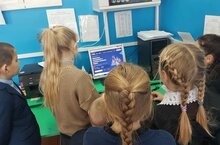 С учащимися 1-4 классов просмотрели презентацию по теме "Безопасный интернет". Затем выполнили контрольные задания,где ребята ответили на вопросы по просмотренной теме. -