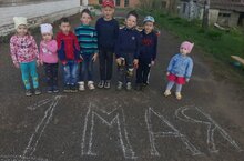 В дошкольной группе воспитатель с детьми сделали рисунки на асфальте на тему: "МИР,ТРУД,МАЙ".