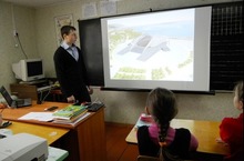 Сегодня студент выпускного курса ГАОУ СПО "Тетюшский педагогический колледж" Назаров Иван встал у классной доски в нашей школе, в рамках преддипломной практики.