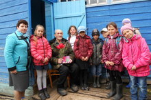 Сегодня учащиеся нашей школы поздравили ветерана ВОв Борисова Александра Васильевича с наступающим Днём Победы: вручили ему открытку, изготовленную своими руками, цветы, прочитали стихи.