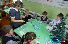 На кружке "Умелые ручки" ребята изготовляли снежинки из бумажных полосок. Работы получились объёмными и ажурными.