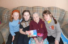 В преддверии Дня Победы учащиеся навестили труженицу тыла Мамшову В.В. Вручили ей поздравительную открытку и букетик тюльпанов.