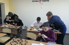 В 8 классе на на уроке химии учащиеся составляли модели кристаллических решёток различных веществ, используя демонстрационный материал Точки роста.