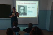 7 ноября библиотекарь школы Бердникова Н.В. провела для учащихся 5-6 классов мероприятие, посвященное 130 летию С.Я.Маршака и его творчеству. Дети узнали интересные факты из жизни писателя и происхождении его фамилии, побывали на виртуальной выставке произведений. В конце мероприятия ребята отгадывали загадки, читали стихи, знакомились с книгами С.Маршака, которые есть в библиотеке.