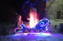 К новому году, силами учащихся и учителей, украсили фасад здания и прилегающую территорию: возле школы на расписных санях красуются Дед Мороз и Снегурочка, на крыше - Северный олень.