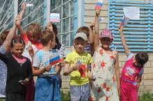 Сегодня в пришкольном лагере прошел "День России". Ребята провели флэшмоб "Россия-Родина моя". Ребята у магазина читали стихи и пели песни о Родине, о родном крае. В заключение подарили зрителям флажки, изготовленные своими руками.